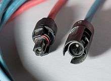 The SAE connector is a hermaphrodite two-conductor DC connector commonly used for solar and automotive applications (also motorcycles). It is so named for the Society of Automotive Engineers who created its specifications.
