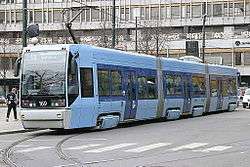 The first was a six-axle articulated tram from Kassel, Germany, with 80% low floor. The company disliked the lack of air suspension and a door construction where the doors went outwards. A Variotram built by ABB from the Chemnitz Stadtbahn was also tested. It has 100% low-floor, is 2.65 metres (8 ft 8 in) wide and also has outward-opening doors. The width made it unsuitable for stopping at some of the new stops. Oslo Sporveier stated that although the tram had many nice features, it was too experimental for their liking.[3] The final tested vehicle was a Class T tram from the Wien Tramway. The six-axle vehicle was not well-adapted for the Oslo system, since it was built after German light rail standards with high platforms and 25 metres (82 ft) curve radius, and could not be operated on the Briskeby Line and the loop at Jar on the Lilleaker Line.[4]