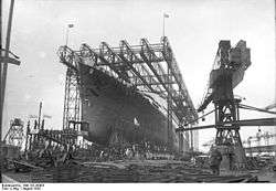 Bremen was built by the new German shipbuilding company Deutsche Schiff- und Maschinenbau. She was built from 7000 tons of high-strength steel of 52 kg/mm² (500 N/mm²), allowing a weight saving of some 800 tons on the structure. She was also the first commercial ship to be designed with the Taylor bulbous bow, though bulbous bows of different types had appeared on earlier merchant vessels, such as the SS Malolo of 1926. She was launched at Bremen during the afternoon of Thursday, 16 August 1928 by President Paul von Hindenburg, only one day after the launch of her sister ship Europa at Hamburg. SS Bremen and her sister ship Europa were considered for their time as the most modern liners in the world. The high speeds and the comfort and luxury level on board made high demands of technical personnel. Each ship required an engineering crew of some 170 men.