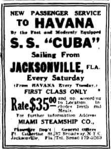 - "Advertisement: New York Direct to Miami S.S. "Cuba"". Brooklyn Daily Eagle. 18 January 1925. Retrieved 9 October 2014.