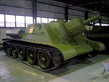 The SU-122 (from Samokhodnaya Ustanovka 122 mm) was a Soviet self-propelled howitzer or assault gun used during World War II. The number "122" in the designation represents the caliber of the main armament—a 122 mm M-30S howitzer. The chassis was that of the T-34.