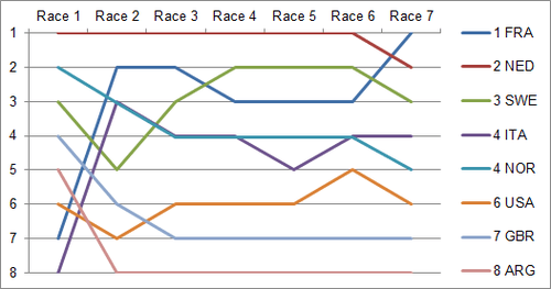 For the 8 Metre the used courses were about 5 nm out of the locks, East of the Isle of Marken on the Zuiderzee.