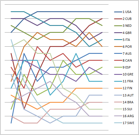 Graph showing the daily standings in the Star during the 1948 Summer Olympics