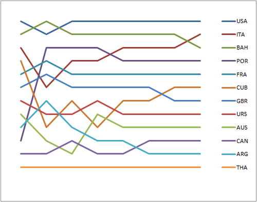 Graph showing the daily standings in the Star during the 1956 Summer Olympics