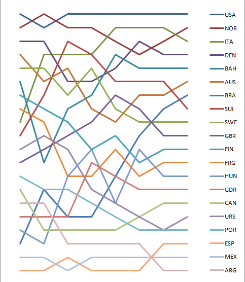 Graph showing the daily standings in the Star during the 1968 Summer Olympics