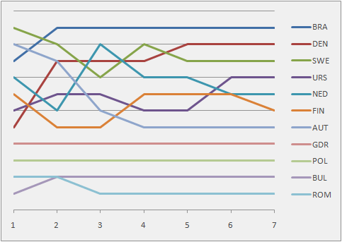 Graph showing the daily standings in the Tornado during the 1980 Summer Olympics