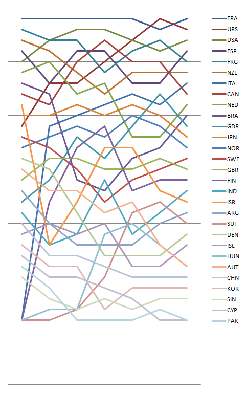 | 13 | Karl Einar Jensen | 13 | 19.0 | 13 | 19.0 | 10 | 16.0 | 14 | 20.0 | 9 | 15.0 | 10 | 16.0 | 6 | 11.7 | 116.7 | 96.7 | |