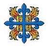 A badge of office was assigned to Saint-Laurent by vice-regal warrant in 1994. This consists of a flaming gridiron overlaid by a blue cross. The gridiron is associated with the martyrdom of Saint Lawrence. The fleurs-de-lys on the ends of each branch of the cross come from the former royal arms of France and were also used by French settlements in Canada such as New France and Quebec.