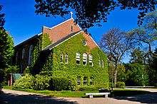 The first bishop of Manchester, Denis Mary Bradley, invited the Benedictine monks of St. Mary's Abbey in Newark, New Jersey, to form a college and preparatory school in his diocese.[11] The monks that came to Manchester from Saint Mary's were primarily of German descent. This is due to the fact that Manchester was heavily populated with French Canadian and Irish immigrant mill workers, and Bradley was unable to find a suitable religious community that would not stir up ethnic tensions. The German monks accepted, and founded the third Catholic college in New England. On August 1, 1889, the New Hampshire legislature approved the incorporation of the Order of Saint Benedict of New Hampshire “for religious and charitable purposes, for the education of youth, for establishing churches and conducting services therein.” This historic date marked the founding of Saint Anselm College.[12] A six-year curriculum in philosophy and theology was developed. In 1892, as Alumni Hall neared completion, a fire destroyed the college on a cold winter night in February. The fire was most likely caused from an ember from the heating stove's gate as it was not closed properly. Thankfully, no one was seriously hurt because of the fire. The monks were forced to rebuild the college, spending considerably less money on the construction, as they had received only $55,000 from the Insurance Commissioner of the State of New Hampshire.[13] To save money, many bricks were salvaged from the previous structure and pieces of granite were cut from large granite rocks still visible on the current quad. In 1893, the current building that remains the center of campus was completed; the fire delayed the first academic semester by one year. The monks rebuilt the college, and on October 11, 1893 the college was officially rededicated. To avoid the possibility of another fire, a power house, which today serves as the college print shop, was constructed separately from the building. Two years later, in 1895, the New Hampshire legislature granted Saint Anselm College the right to bestow standard academic degrees upon its graduates.[2] In 1912, the bell tower and ivy were added to the building; in 1923, the college's second chapel (the first being located on the second floor at the present-day business office) was constructed as a connecting wing. The second chapel serves today as the Alva deMars Megan Chapel Arts Center.