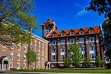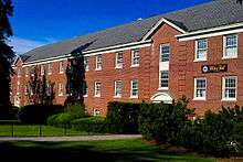 34 buildings on campus are devoted to student housing, with approximately 95% of the student body living on campus.[32] The majority of freshman males live in Dominic Hall, while most freshman females reside in either Joan of Arc Hall (commonly referred to as JOA) or Baroody Hall. Dominic Hall is a freshman dorm, located adjacent to the Coffee Shop and in close proximity to Alumni Hall and Bradley House. Dominic Hall houses over 205 students, offering mostly doubles, very few singles and several "quads", or four-person rooms. Dominic is affectionately nicknamed "Dirty Dom"; however, new lights, windows, doors and ceiling tiles have been installed and the custodial staff cleans the hallways and communal bathrooms five days a week. Joan of Arc is a female freshman residence hall where double-type rooms predominate. However, freshmen may be placed in any residence hall on campus. The Lowers are located near the NHIOP at the bottom of Saint Anselm Drive; these apartments were built in the mid-1990s and have a kitchen, one and a half bathrooms, a family room and bedrooms. A similar setup is available in Uppers; however, these dorms are slightly newer and are the favorite of seniors because they are located closer to central campus. Traditionally, residence halls have been single sex, though this began to change in the 2007–2008 academic year, when Brady Hall had female residents on its third floor while the bottom two floors were male. Hilary, Bertrand and Brady Halls are some of the largest on campus, as they can house over 120 students each. Holy Cross Hall, formerly named Building M has mostly singles and very few doubles; these rooms connect to a central hallway, two bathrooms and a large common room to form a "Pod".[14]