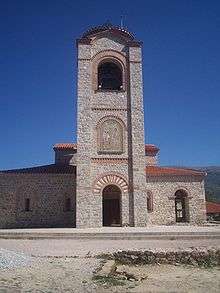 Saint Panteleimon (Macedonian: Свети Пантелеjмон, Sveti Pantelejmon, pronounced [pantɛlɛjˈmɔn]; Greek: Άγιος Παντελεήμων) is a monastery in Ohrid, Republic of Macedonia situated on Plaošnik. It is attributed to Clement of Ohrid, a disciple of Saint Cyril and Saint Methodius. Archaeologists have come to believe that the monastery was the site where the first students of the Glagolitic alphabet (used to translate the Bible into Old Church Slavonic) were taught.
