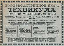 - 1920 - 1930 - Petrograd College for Fine Mechanics and Optics