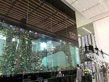 The Heron Tower was designed to feature a concierge-style entrance and reception area, incorporating a 70,000 litre aquarium containing around 1,200 fish.[10] The aquarium is the largest privately owned example in the United Kingdom and contains over 60 species of fish in an entire sustainable ecosystem; the species were selected by expert biologists and animal curators to ensure compatibility and adaptability to the environment. The tank is attended to by a team of two full-time fish attendants, who feed the fish a diet rich in natural ingredients according to their requirements and monitor the tank for water chemistry and fish health, and two to three part-time divers who clean the rockwork and glass regularly.