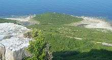 Situated along the eastern coastline of East Weares,[2] the two salt pans have existed for many centuries. The origins of the pans remain uncertain, however the limited evidence recorded suggest they are likely to be medieval.[3] During Saxon and Norman times the pans were one of two places for the thriving salt production industry on Portland. The other was the tidal lagoon known as The Mere, which was situated at the north of the island. The two pans at East Weares were formed by the digging of Kimmeridge clay.[4]