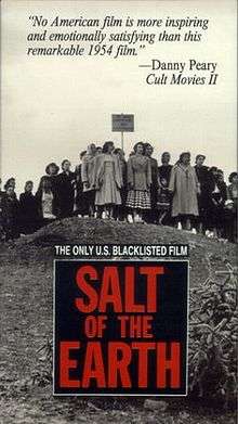 Salt of the Earth is a 1954 American drama film written by Michael Wilson, directed by Herbert J. Biberman, and produced by Paul Jarrico. All had been blacklisted by the Hollywood establishment due to their alleged involvement in communist politics.[1]