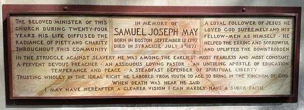 - ↑ "Rev Samuel Joseph May". FindAGrave.com. Retrieved 29 July 2016.