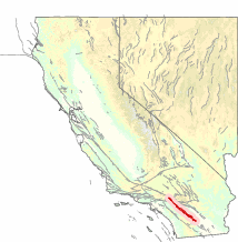 The extent of this segment is based on the surface rupture of the 1968 Borrego Mountain earthquake and shares a recurrence interval of 175 years.[7]
