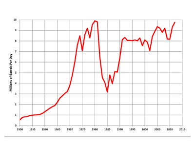 However, according to journalist Karen Elliott House, "some energy experts are convinced that current reserves are substantially lower than those officially claimed by Saudis and that the depletion rate is substantially faster."[12] According to a former senior executive of the state-run Aramco oil company (Sadad al-Husseini) the country's real oil reserves are 40% lower than the official estimate of 716 billion barrels of oil.[13] House states, "no convincing evidence ever has been provided to support the increase [in Saudi oil reserves]. And tellingly, in 1982 the kingdom and other OPEC oil producers ceased releasing production data by field. ... Finally, Saudi Arabia has not revised its reserve estimate since 1988, even though it has pumped somewhere between 5 million and 9 million barrels a day for the intervening two decades, for a total of nearly 50 billion barrels."[12]