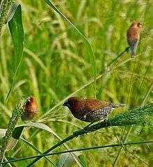 20. "Scaly-breasted Munia feeding on green alga". Bird Ecology Study Group. 2009-10-21.