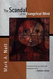 The Scandal of the Evangelical Mind (published 1994) is a book by evangelical Christian scholar Mark A. Noll, who is currently Francis A. McAnaney Professor of History at the University of Notre Dame. As a critique of the waning influence of intellectual pursuits within the American evangelical community, the book is both a scholarly analysis of evangelical anti-intellectualism and "an epistle from a wounded lover" by an intellectual who feels betrayed by evangelical Christianity's neglect of "sober analysis of nature, human society, and the arts".[1] Scandal was named "Book of the Year" by Christianity Today, the popular neo-evangelical Christian magazine.[2] In 2004, ten years after its initial publication, Christianity Today claimed that the book had "arguably shaped the evangelical world (or at least its institutions) more than any other book published in the last decade".[3]