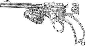 The Schönberger-Laumann 1892[1][2] was the first semi-automatic pistol. It was invented by the Austrian inventor Joseph Laumann in 1892. The design is very similar to the Bergmann 1896 pistol.