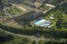 Town event hall (Stadthalle) and outdoor wave pool (Wellenfreibad)