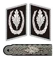 For the lower ranks, the SS also specified that a patch showing the wearer's regiment (Standarte) would be worn opposite the badge of rank while the higher SS leaders would continue to wear oakleaf insignia on both collars. Collar tabs below the rank of Sturmführer were edged in black-and-white twist cord; those of Sturm and Sturmbann leaders used black-and-silver while those of senior leaders were edged in solid silver cord.
