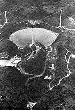 Arecibo Observatory in Puerto Rico with its 300 m (980 ft) dish, one of the world's largest filled-aperture (i.e. full dish) radio telescope, conducts some SETI searches.