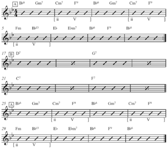 | Fm7    Bb7 | Ebmaj7 Ab7 | Cm7    F7 | Bbmaj7 |[11]