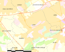The defences of the German army in the west had been improvised since late 1914 and in many places were vulnerable to the growing number of French heavy guns. During the spring, the Westheer began to implement a standard defensive theory and to build a second position with barbed wire in front, far enough behind the first position to require an attacker to pause to bring field artillery into range. The first position was elaborated into a zone, with camouflaged strong points and machine-gun nests built of concrete behind the front trenches.[15] The 6th Army held a front of 90 kilometres (56 mi) from Menin to the south of Arras with thirteen divisions and the 58th and 115th divisions in OHL reserve, behind the front. The 6th Army had 660 field guns and 150 heavy guns. West of Lille, the front line was in the marshy Flanders plain and south of La Bassée, the ground was criss-crossed by waterways and drainage ditches, which made fortification difficult. West of Lens, the high ground of Vimy Ridge and the Lorette Spur dominated the ground further west and to the south around Arras, the ground was overlooked from the ridge at Thilloy beyond the Scarpe.[16]