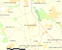 South of Ablain rose wooded heights towards Carency, with the village in a hollow, the houses in five groups, one in the centre and the others facing north, west, south and east, protected by four lines of trenches. Each street and house had been fortified, connected by underground passages and garrisoned with four battalions of infantry and six companies of engineers. Field guns and machine-guns had been dug in to the gardens and orchards, as well as behind the church, which made it impossible to attack the village except form the south and east. Trenches connected Carency with Ablain and Souchez on the Béthune–Arras road. Between Souchez and Arras at the hamlet of La Targette, the Germans had dug trenches, known as the "White Works", under which lay a German fortress. To the east of La Targette, was the village of Neuville St. Vaast, 1.5 miles (2.4 km) long and 700 yards (640 m) wide, between the Arras–Béthune and Arras–Lens roads, which had also been turned into an underground fortress.[22]