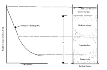 The settling particles can contact each other and arise when approaching the floor of the sedimentation tanks at very high particle concentration. So that further settling will only occur in adjust matrix as the sedimentation rate decreasing. This is can be illustrated by the lower region of the zone-settling diagram (Figure 3). In Compression zone, the settled solids are compressed by gravity (the weight of solids), as the settled solids are compressed under the weight of overlying solids, and water is squeezed out while the space gets smaller.