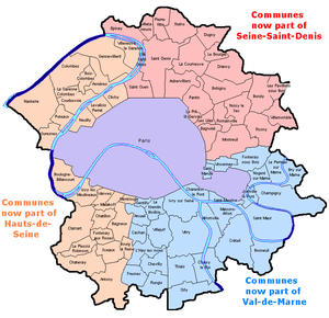 The break-up of the Seine department involved the following changes: