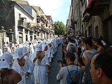 A Catholic Christian procession with battenti (beaters) in the Italian city of Guardia Sanframondi
