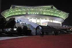 The venue was originally built in 2004 and 2005 to host the Tennis Masters Cup, after the ATP awarded the tournament to Shanghai for a three-year contract (2005–2007), later extended to a fourth year.[4][5] The site was conceived to become the largest tennis venue in Asia, with a 15,000-seats main stadium featuring a retractable roof of eight steel panels representing Shanghai's city flower, the magnolia. As of 2013, the Arena's Grand Stand Court 1 stands in fifth place in the list of tennis stadiums by capacity, alongside Beijing's National Tennis Stadium (built for the 2008 Summer Olympics) and Wimbledon's Centre Court.