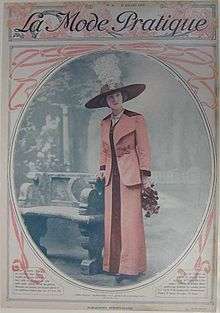 A tailored dress in pink shantung, trimmed with black shantung, 1912.