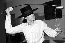 Sherry is traditionally drunk from a copita (also referred to as a catavino, a special tulip-shaped sherry glass. Sampling wine directly from a sherry butt may be performed with characteristic flourish by a venenciador, named after the special cup (the venencia) traditionally made of silver and fastened to a long whale whisker handle. The cup, narrow enough to pass though the bung hole, withdraws a measure of sherry which is then ceremoniously poured from head height into a copita held in the other hand.[22]