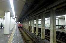 The station consists of two opposed underground side platforms serving two tracks.