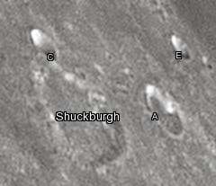 By convention these features are identified on lunar maps by placing the letter on the side of the crater midpoint that is closest to Shuckburgh.