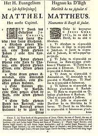 - Campbell, William; Gravius, Daniel (1888). The Gospel of St. Matthew in Formosan (Sinkang dialect) with corresponding versions in Dutch and English (in Austronesian, Dutch, and English). London: Trubner. OCLC 844610148.