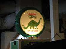 At the Chicago World's Fair of 1933–1934, Sinclair sponsored a dinosaur exhibit meant to point out the putative correlation between the formation of petroleum deposits and the time of dinosaurs, now a largely discredited misconception.[10] The exhibit included a two-ton animated model of a brontosaurus.[11] The exhibit proved so popular it inspired a promotional line of rubber brontosaurs at Sinclair stations, complete with wiggling heads and tails, and the eventual inclusion of the brontosaur logo. Later, inflatable dinosaurs were given as promotional items, and an anthropomorphic version appeared as a service-station attendant in advertisements. Some locations have a life-size model of the mascot straddling the building's entrance.