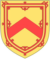 Arms of Fleming: (Baron Fleming (or Baron Slane)): Or, a chevron within a double tressure flory counter-flory gules. These arms were borne as an inescutcheon of pretence by Charles Harrington, 3rd Earl Harrington, husband of the 1st baronet's daughter and co-heiress Jane Harrington