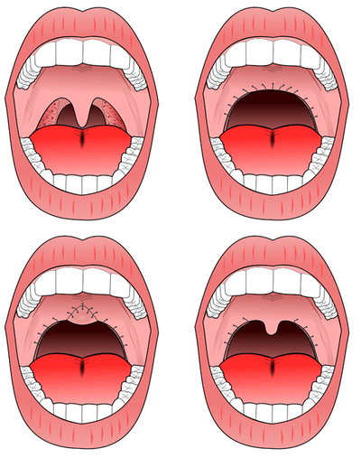 Tonsillectomy and uvulopalatopharyngoplasty (UPPP or UP3) are available to address pharyngeal obstruction.