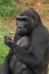 The Great Ape House is separated into two sets of enclosures, one houses seven orangutans (two males named Kiko and Kyle, four females named Lucy, Batang, Iris, Bonnie, and a male baby named Redd, born in 2016), while the other houses six western lowland gorillas (three males named Baraka, Kojo and Kwame, and three females named Mandara, Kibibi and Calaya). The orangutans are allowed access to the Think Tank (see below) by travelling along the "O-Line", a series of high cables supported by metal towers that enable the orangutans to move between the two buildings. Kyle, Batang and Redd are Bornean orangutans and Kiko, Lucy, Iris and Bonnie are all hybrid orangutans.