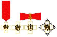 The Social Welfare Decoration (German: Ehrenzeichen für deutsche Volkspflege) was a German Civil Award created by Adolf Hitler on 1 May 1939 for services in the social sector. The decoration was issued in three classes and was awarded for a wide variety of service, in the social sector, to the German state. Qualifying service would have been with Winterhilfswerk, National Socialist Volk Welfare, medical and rescue work, or care of foreign and ethnic Germans. As a replacement for Red Cross awards, it was conferred in four classes consisting of a white-enameled gold Balkenkreuz with Reich eagle and swastika. A "Medal of Social Welfare" was also issued for lesser degrees of service, not warranting the higher presentation of a class award.