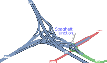 - Gravelly Hill Interchange, one of many known as Spaghetti Junction, is junction 6 of the M6 motorway where it meets the A38(M) Aston Expressway in Birmingham.[11]