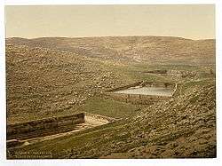 Solomon's Pools (Arabic: برك سليمان, Burak Suleīmān, Solomon's Pools, or simply el-Burak, the pools; Hebrew: בריכות שלמה, Breichot Shlomo) are three ancient reservoirs located in the south-central West Bank, immediately to the south of the Palestinian village of al-Khader, about 5 kilometres (3.1 mi) southwest of Bethlehem and near the road to Hebron.[1]