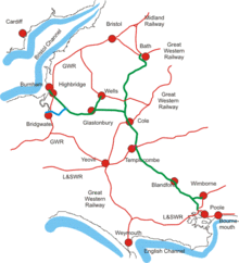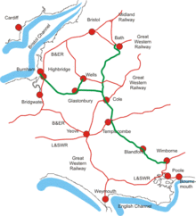 - the original main line and its eastward extension, running from Highbridge to Templecombe (the junction with the Salisbury & Yeovil Railway);