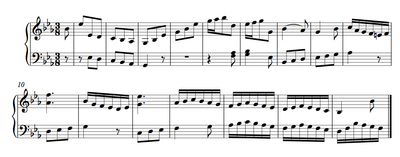 Further on, there is a modulation to A flat major, where the main theme is repeated. The piece ends with the last three-quarters of the original motif, its repeat and a modulation back to the original key of E flat major.
