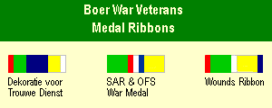 In 1920, the South African government instituted a separate set of awards, for Boer veterans of the 1899–1902 Anglo-Boer War — neither of the Boer republics for which they had fought had had its own honours system. The awards were: